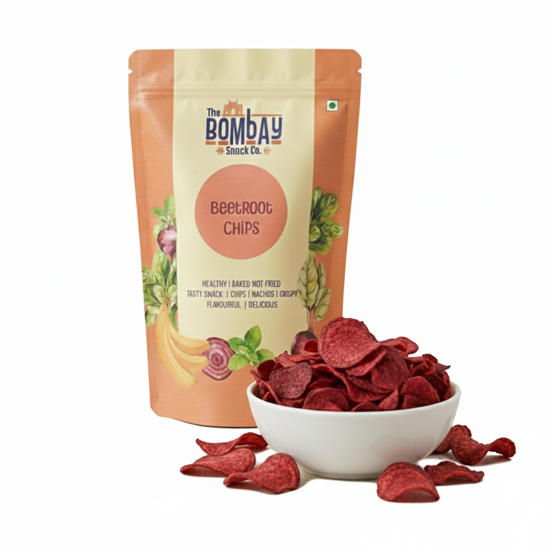 Crunchy baked beetroot chips made from real vegetables, lightly seasoned and oil-reduced, offering natural flavor and healthy snacking without guilt.