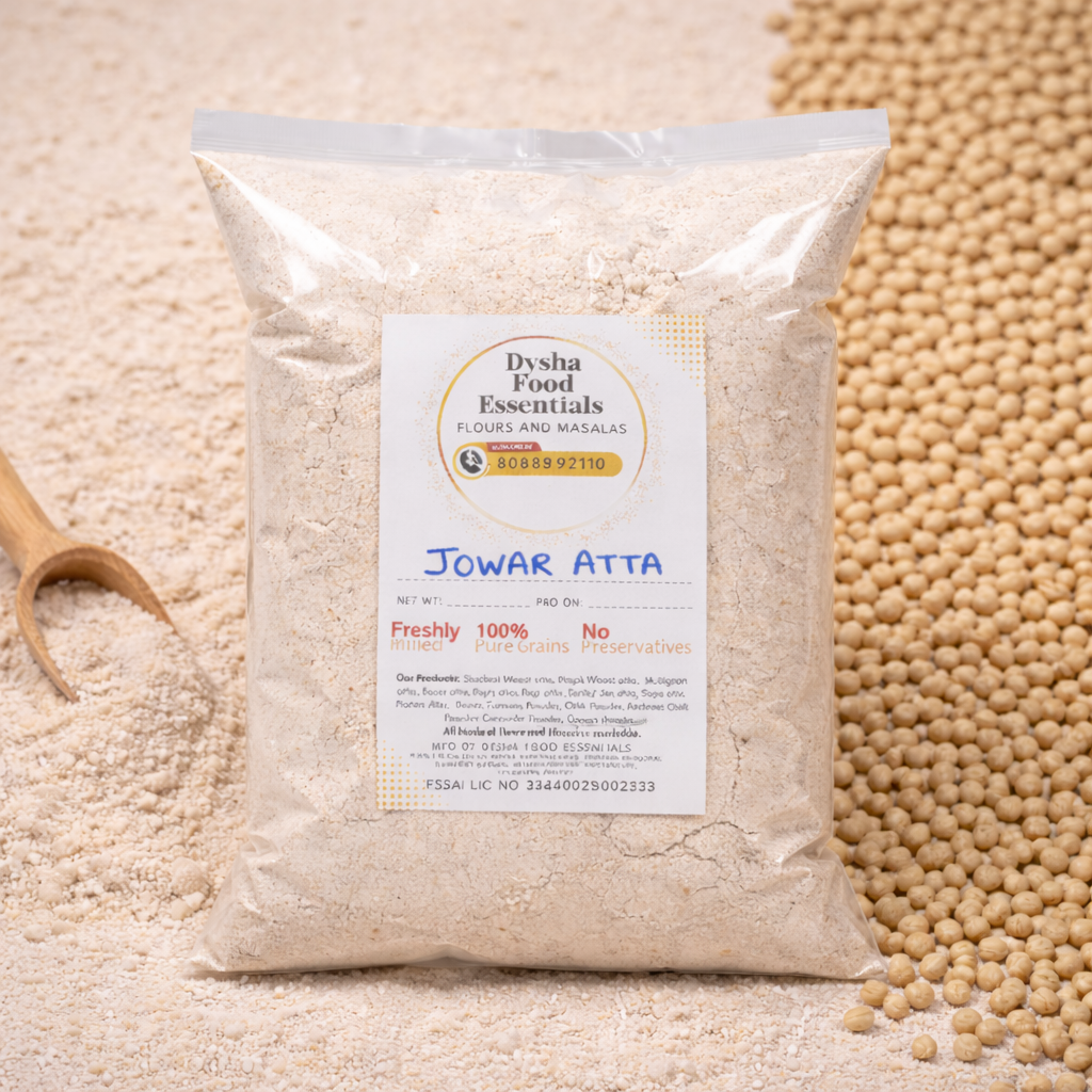 Jowar Atta is prepared from premium jowar grains and stone-ground to retain natural fiber and nutrients. Naturally gluten-free, it supports digestion, heart health, and weight management. With a mild taste and wholesome texture, it is suitable for daily meals and ideal for those seeking healthy, millet-based alternatives to regular wheat flour.
