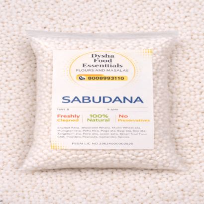 Sabudana is made from carefully processed tapioca starch and known for its purity, uniform size, and smooth texture. When soaked and cooked, the pearls turn soft and fluffy, making them perfect for preparing sabudana khichdi, vada, kheer, and other traditional recipes.